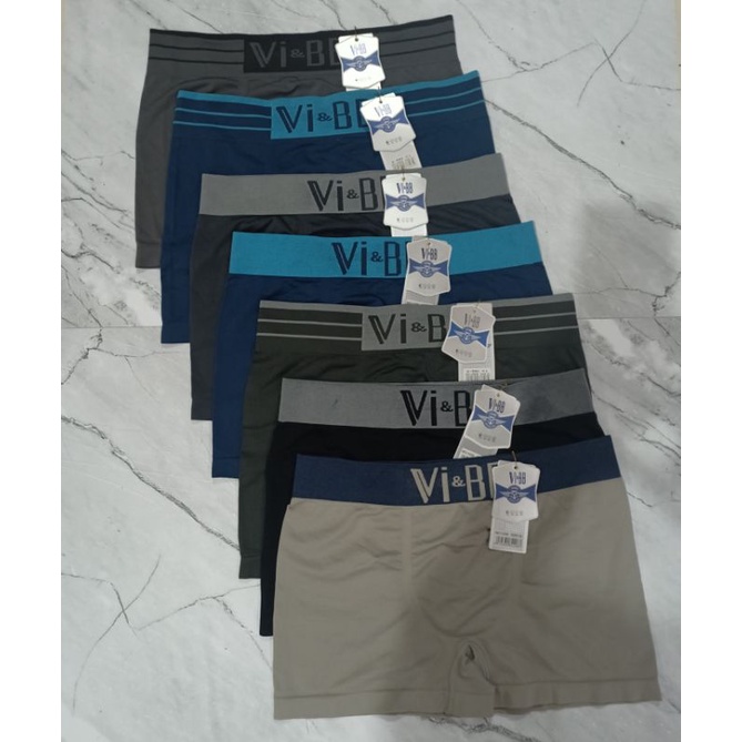 Merk VI&BE Bahan 92% poliamida 8% elastano, dari serat fiber anti bacterial CD boxer seamless rajut tanpa sambungan Bahan sangat elastis, lentur, nempel di body Tidak gatal di kulit dan menyerap keringat sehingga nyaman dipakai sepanjang hari
