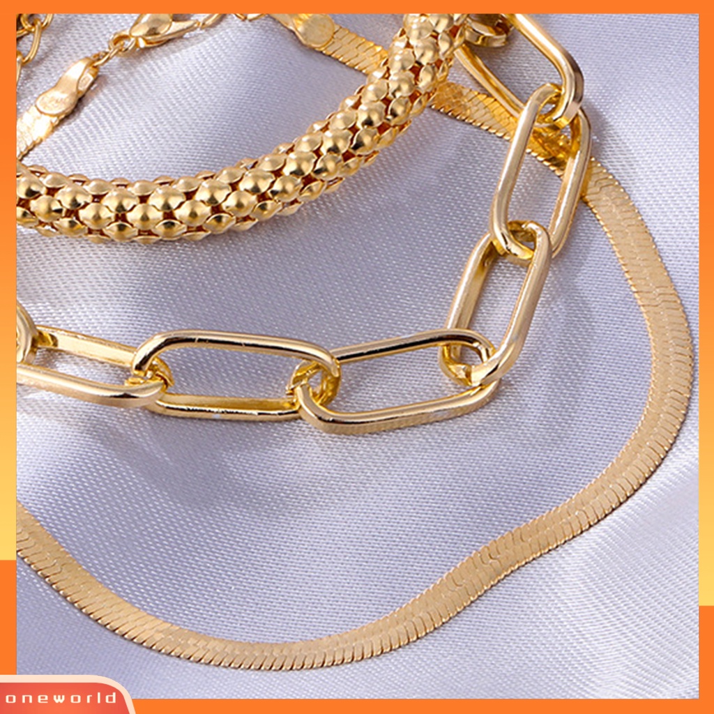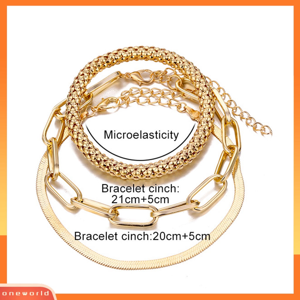 Detail 3pcs Gelang Rantai Ular Multilayer Electroplating Adjustable Untuk Wanita