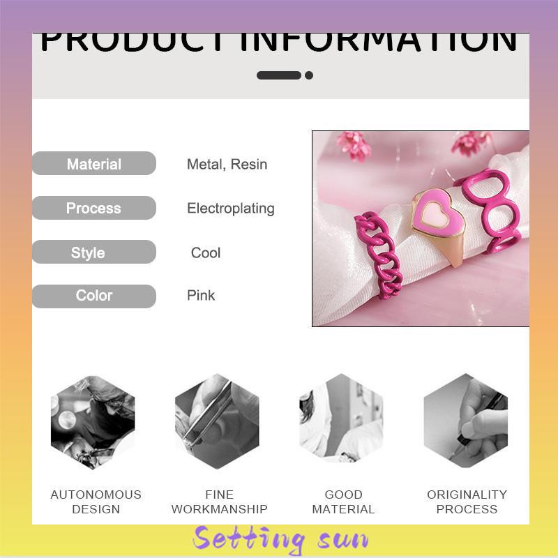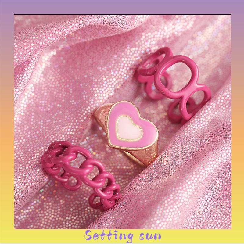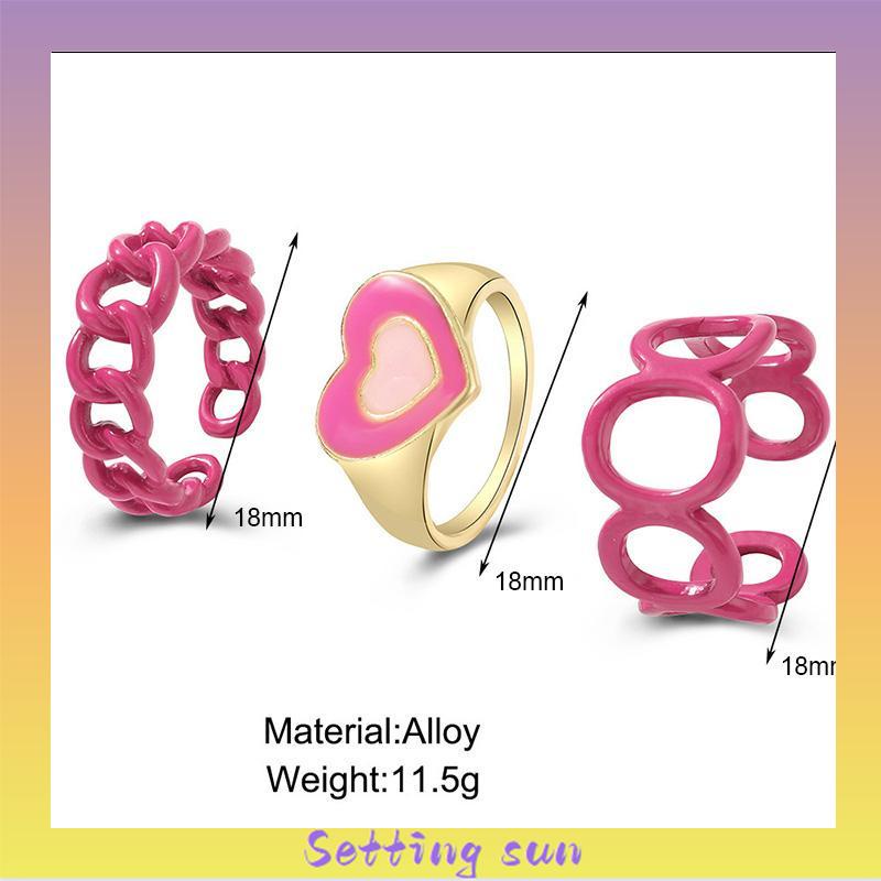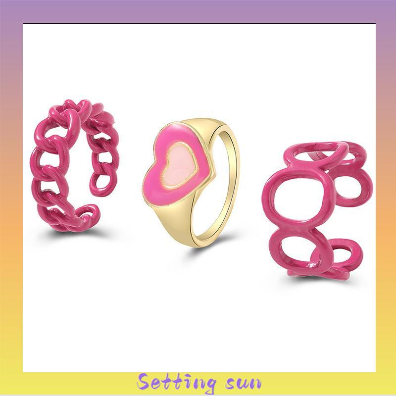 Aksesoris Fashion > Cincin > 3PCS Heart Geometry Rings Cincin Geometri Jantung Cincin Mode Menetes Minyak yang Dapat Disesuaikan untuk Aksesoris Perhiasan Wanita TN