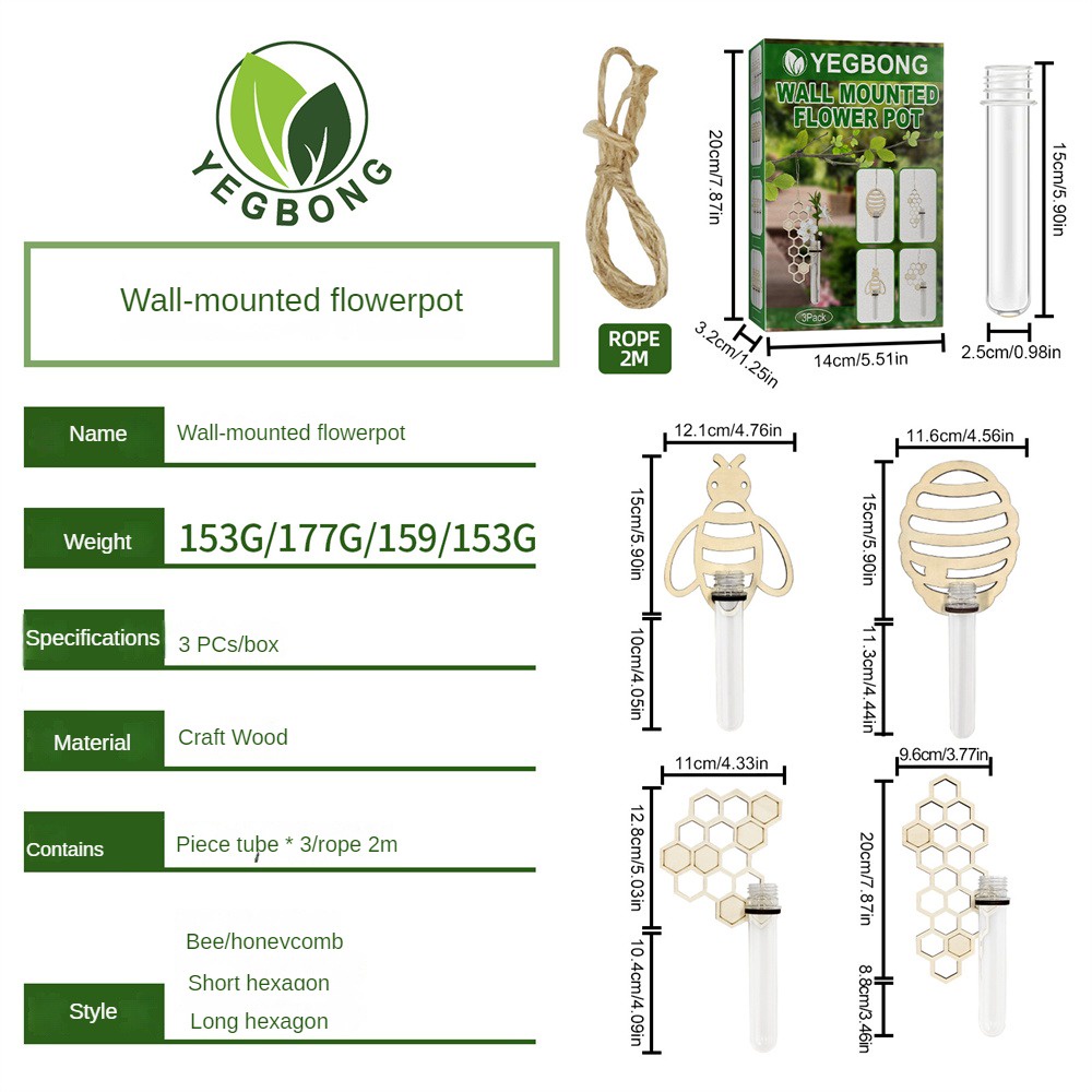 Perlengkapan Rumah > Dekorasi > Vas & Bejana > ღ 3Pcs/Kotak Dinding Pot Bunga Wall Hanging Kaca Vas Tanaman Hidroponik Vas Dinding Dekorasi Liontin Rumah Ruang Tamu Kamar latar Belakang Dekorasi