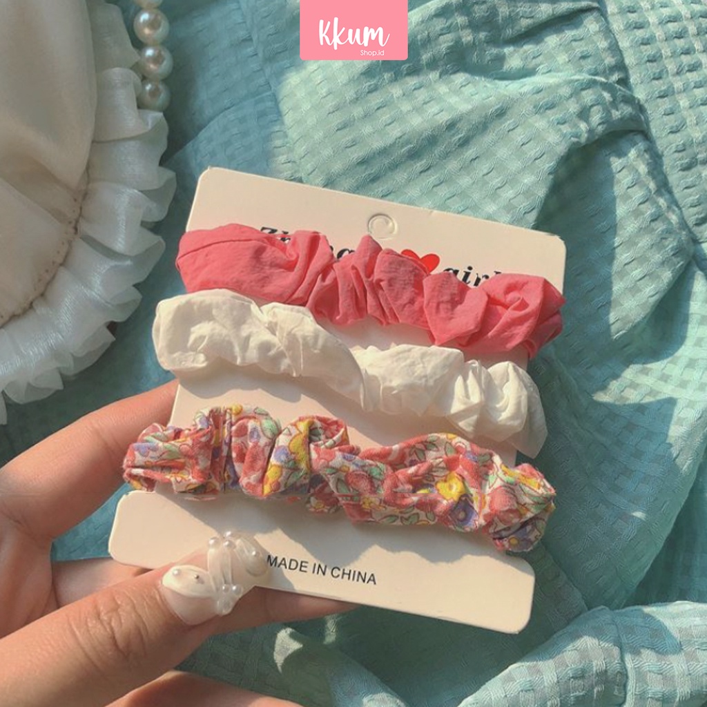 Aksesoris Fashion > Aksesoris Rambut > Ikat Rambut, Pita & Scrunchie > 3PCS scrunchie/ Kunciran rambut korea/ Ikat rambut cepol cute