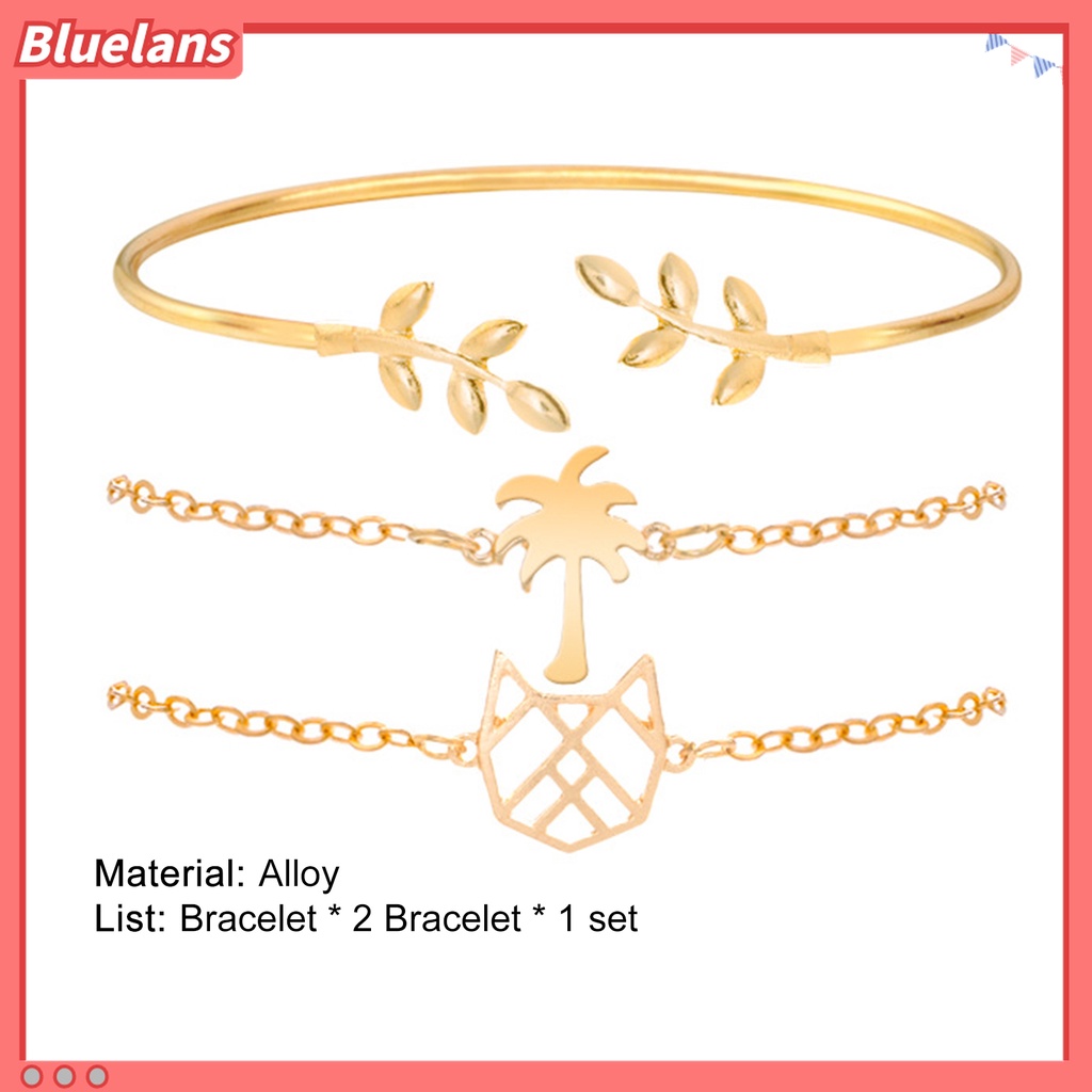 Detail 3pcs / Set Gelang Bangle Adjustable Desain Daun Kelapa Untuk Aksesoris Perhiasan