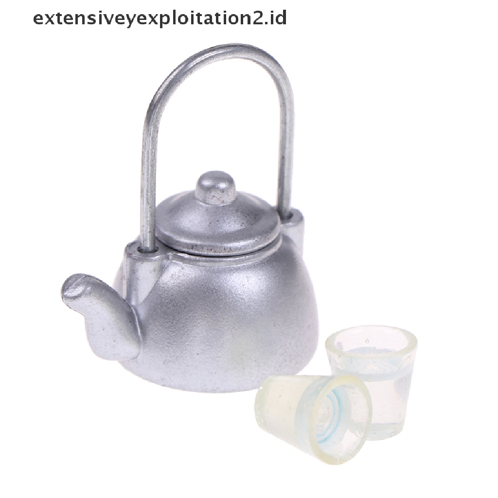 3 Pcs/Set Rumah Boneka Mini Vintage Ketel Cangkir Model Adegan Alat Peraga Dapur Mainan