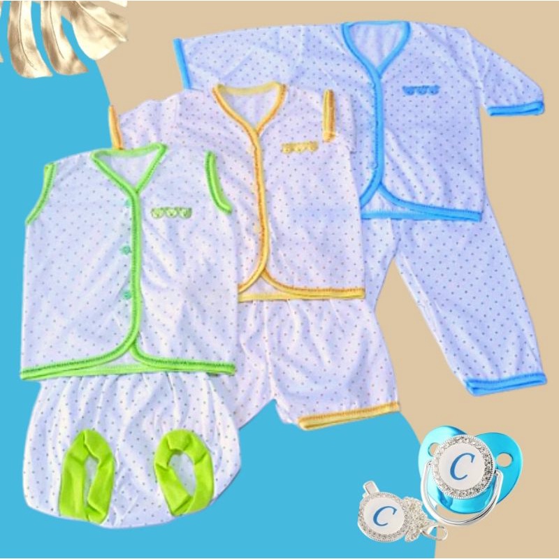 Detail 3Pcs Setelan Polkadot SET PANJANG, PENDEK, Tanpa LenganSetelan Baju Baby Newborn Yukensi, SET BINTIK BONEKA