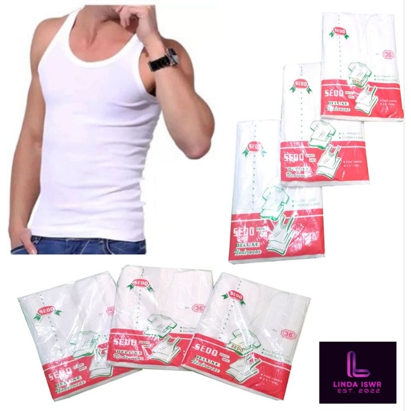 Detail 3pcs singlet Pria SEDO bertekstur salur/kaos dalam pria dewasa