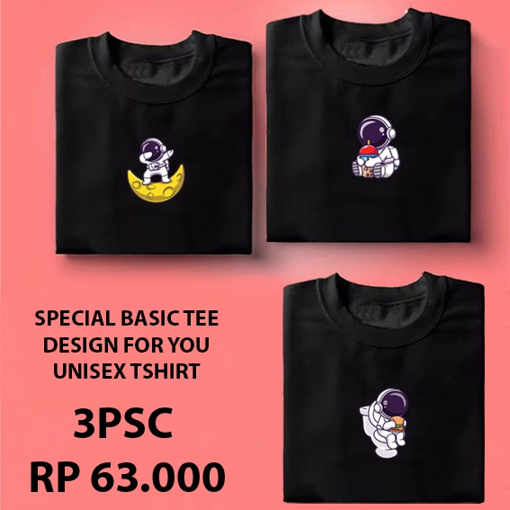 Detail 3psc / kaos distro motif astronot / kaos pria wanita / kaos pria / baju wanita / kaos wanita / baju pria / atasan / polos / atasan wanita / tshirt