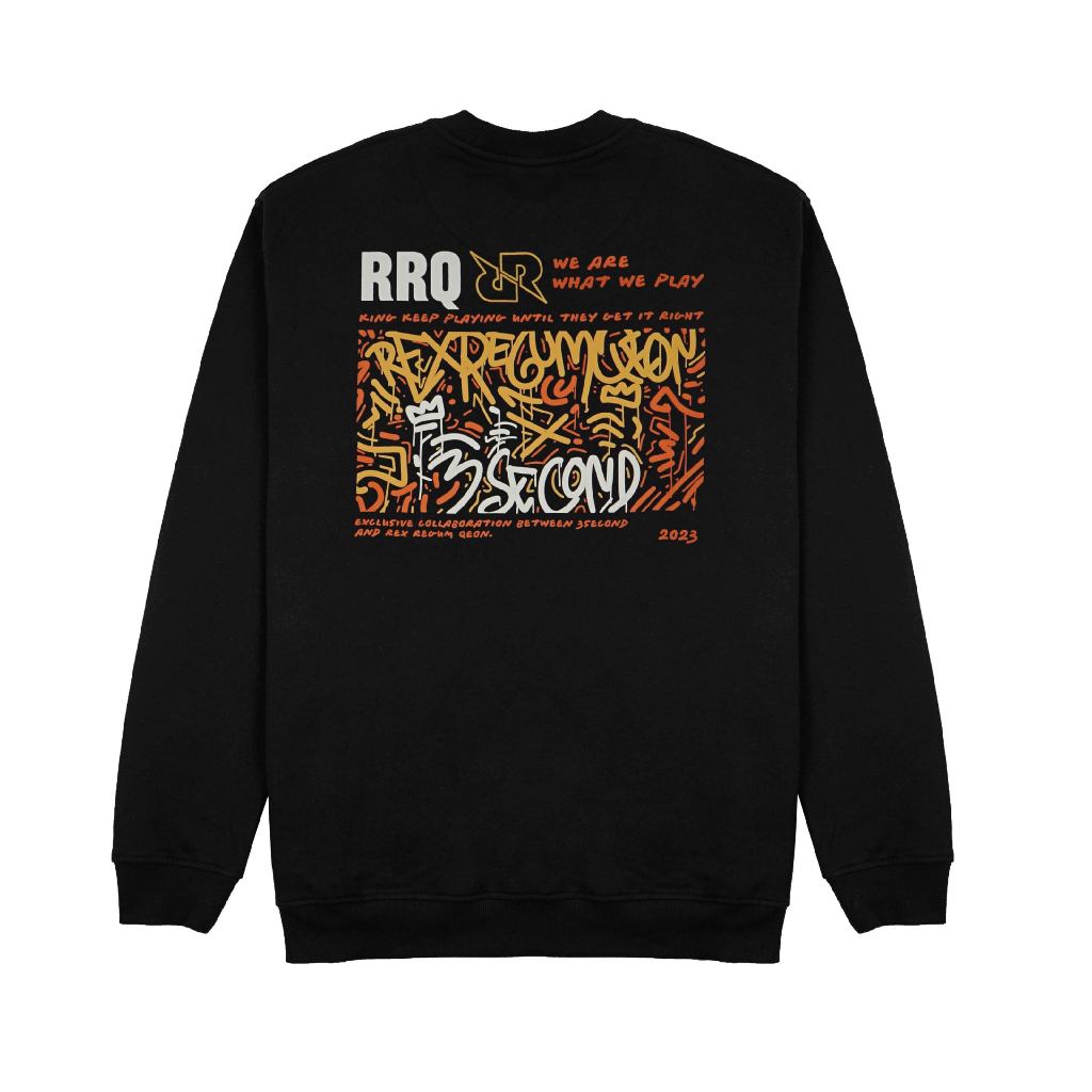3Second x RRQ Crewneck Kolaborasi seru antara RRQ dan 3Second hadir dalam Crewneck Lengan Panjang yang akan membuatmu tampil seperti sang juara! Terbuat dari bahan katun fleece yang nyaman, crewneck ini adalah kombinasi sempurna antara gaya dan kenyamanan.