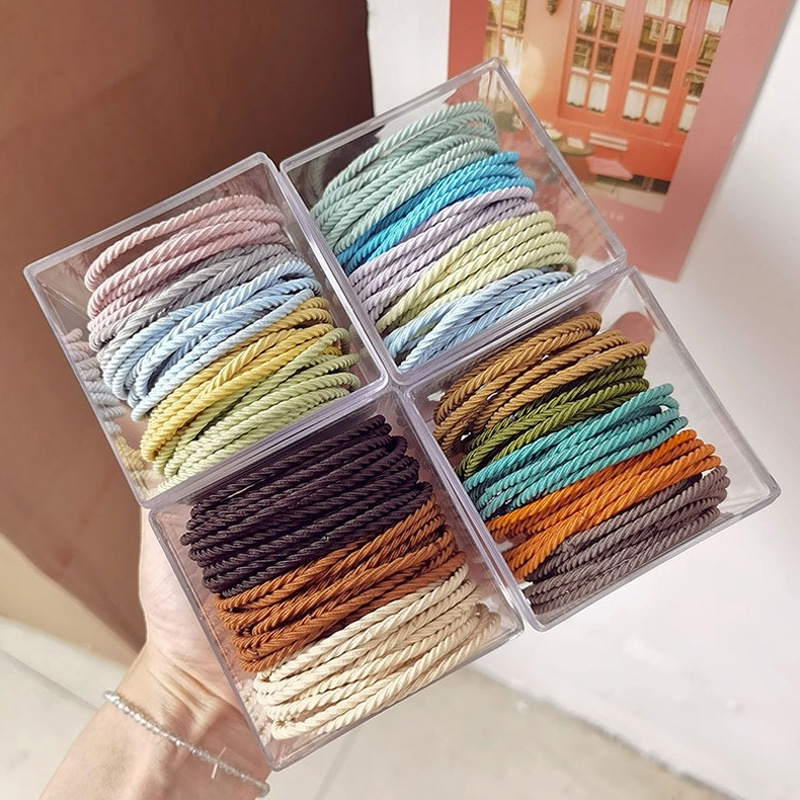 Detail 3SP | ART154 Ikat Karet Rambut Wanita Isi 50 Ikat Rambut Polos Elastis Fashion