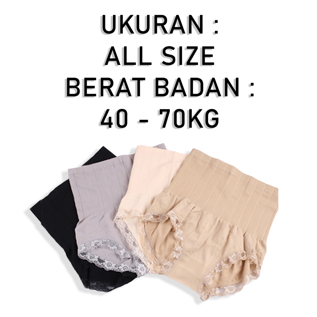・keterangan celana dalam korset wanita ini efektif untuk mengurangi perut buncit jika dikenakan secara rutin. Terbuat dari bahan yang halus dan elastis tidak akan menyebabkan ruam gatal pada kulit. Dilengkapi dengan variasi renda sehingga celana dalam terlihat lebih cantik. + all size fit to L cocok untuk BB 40 kg - 60 kg + produk sudah dilengkapi dengan kemasan per pcs, cocok untuk dijual kembali