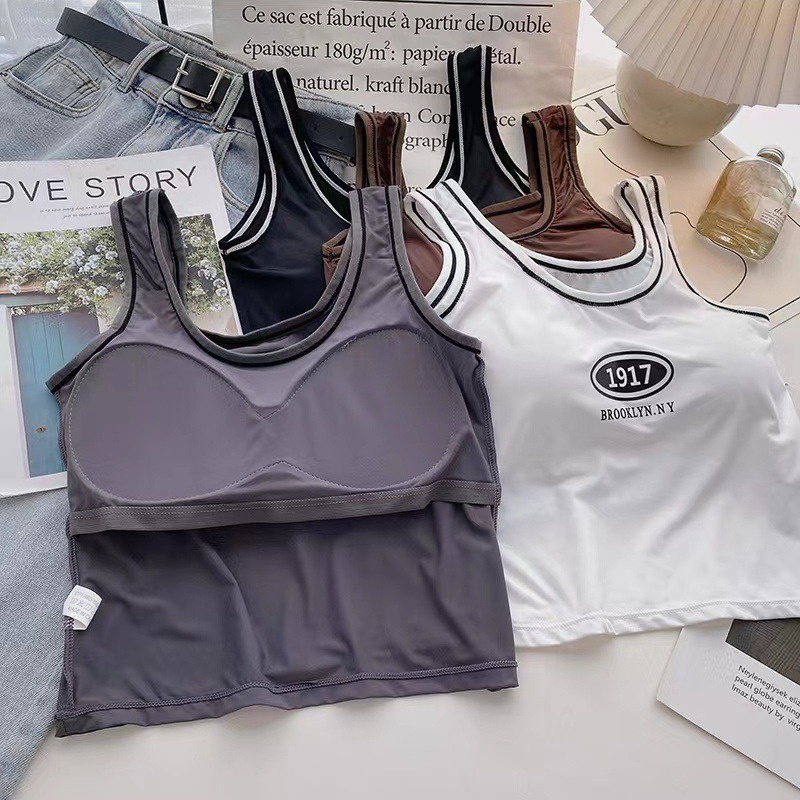 Pakaian Wanita > Atasan > Tanktop & Kamisol > 3SP | UWR112 Tanktop Bra With Cup Singlet Wanita Ice Silk Tanktop Crop Top Fashion Korea Pakaian Dalam Wanita