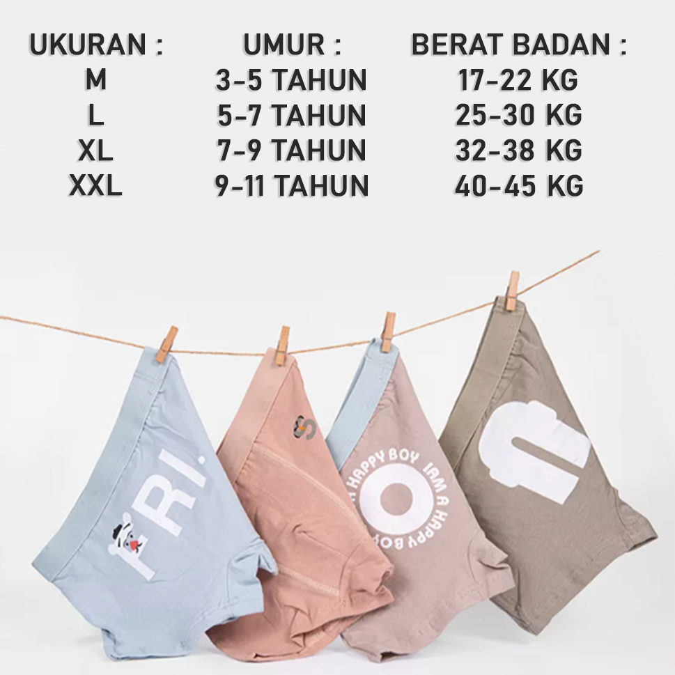 XXL Umur : 9-11 tahun Lingkar Pinggang : 52-60cm Tinggi Badan : 135-145 cm Berat Badan : 40-45 kg