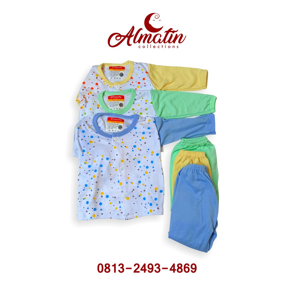 Detail 3STEL Baju Bayi Lengan Panjang MURAH / Setelan Piyama Baju Tidur Panjang D'noorfa Kancing Depan