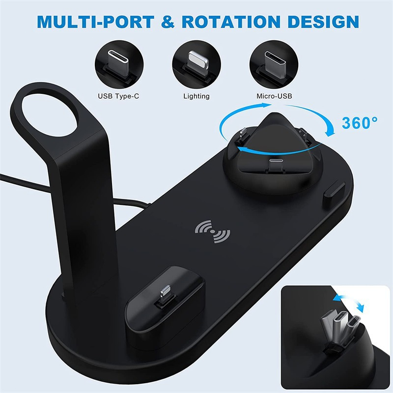 Detail 4 In 1 Multifungsi Telepon QI Wireless Charger USB Cepat Pengisian Dock Stand Stasiun 10W untuk Apple Airpods IWatch iPhone Ponsel Android