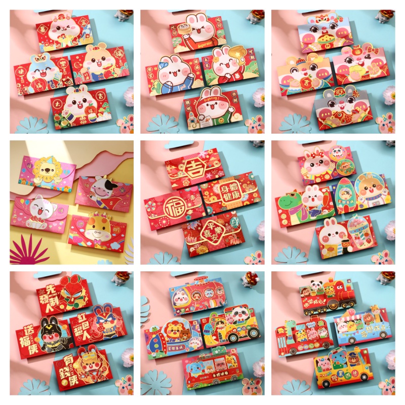 Detail 4 Pcs Amplop Angpao Merah Motif Kartun Untuk Tahun Baru Cinaimlek 2023