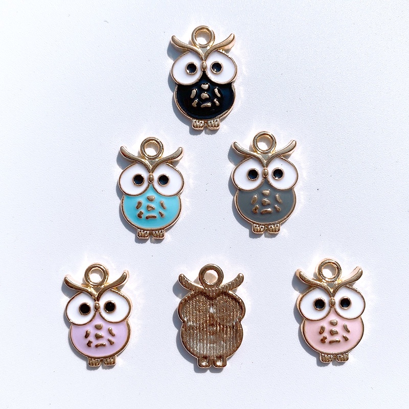 Detail 4 Pcs Paduan Warna Tetesan Minyak Hewan Liontin Indah Burung Hantu Liontin DIY Gelang Kalung Perhiasan Produksi