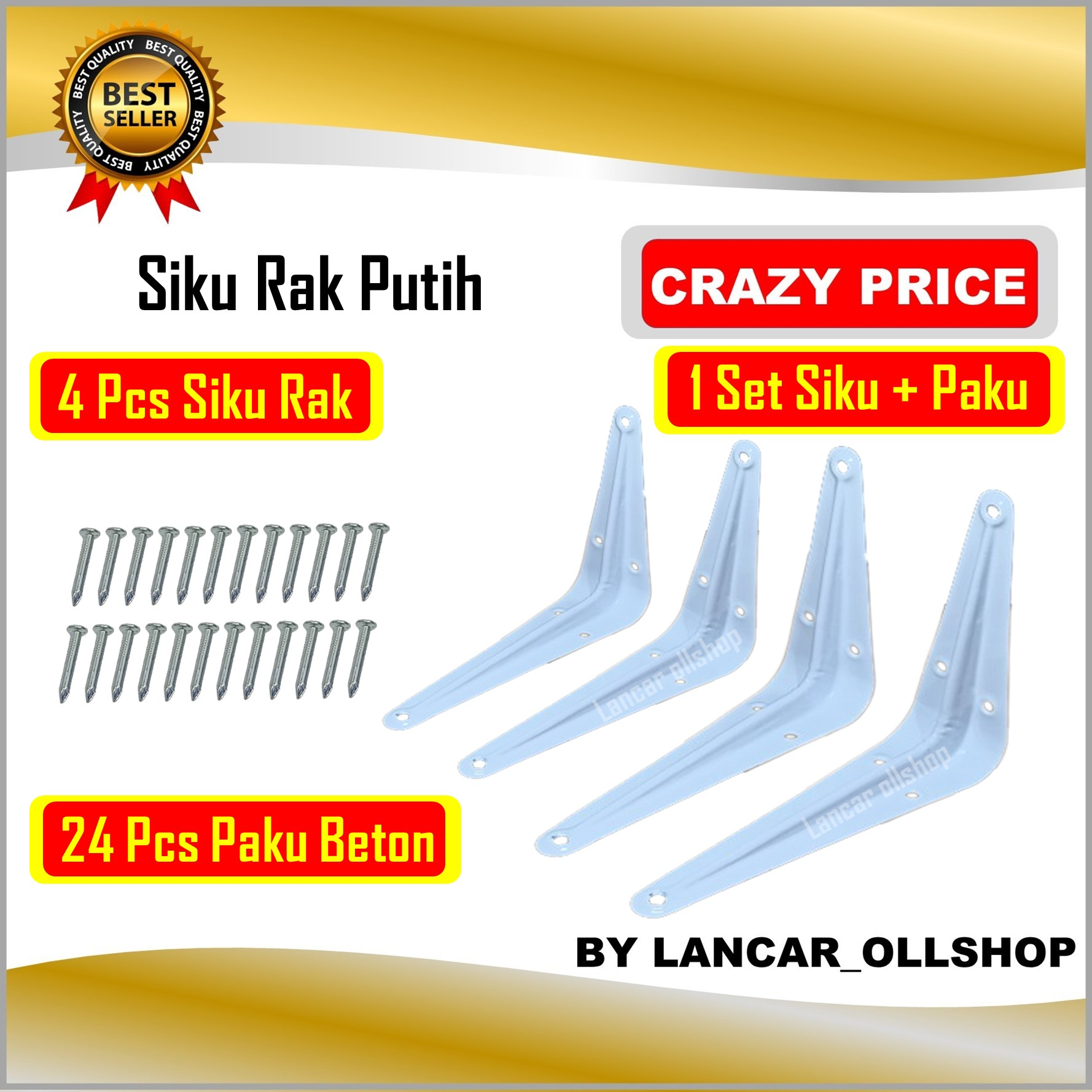 Perlengkapan Rumah > Furniture > Rak & Rak Gantung > 4 Pcs Siku Rak Dinding L Putih Siku Penyangga / Rak Dekorasi Ruangan Siku Putih / 4 Pcs Siku Rak 24 Pcs Paku Beton Ambalan Rak Dinding