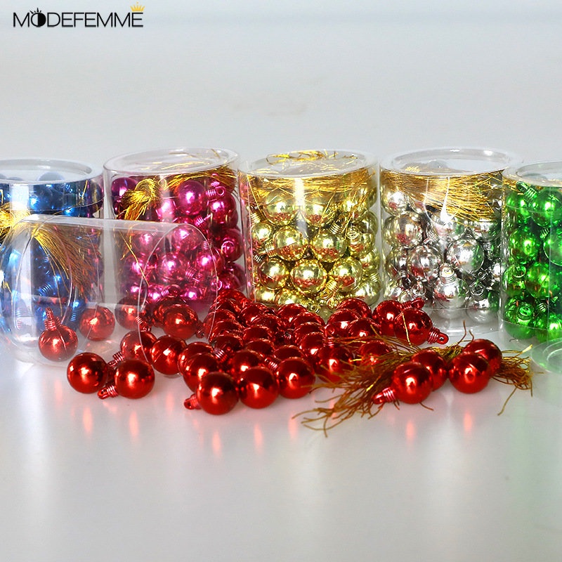 Bahan: Plastik Warna: merah, emas, biru, merah mawar, perak, hijau Ukuran: 1.5 cm Produk berisi: 40 * bola Natal