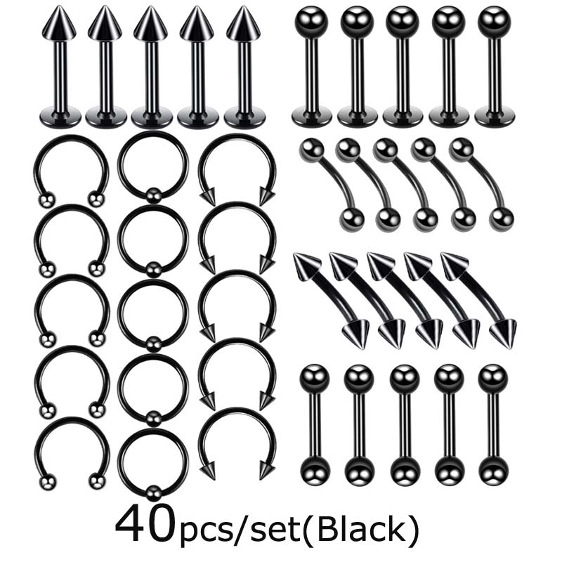 Material: Stainless steel Colour: Silver/Black/Gold/Multicolor/Rose Gold Thickness(Gauge): 1.2mm(16G) Bar Length: 6mm/8mm/10mm Quantity: 40pcs/sets They are available