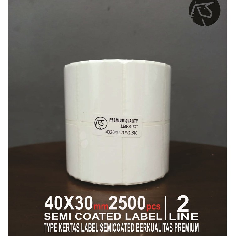 Deskripsi 40X30mm 2Line 2500pcs Gap Core 1" Semi Coated Label Sticker Barcode