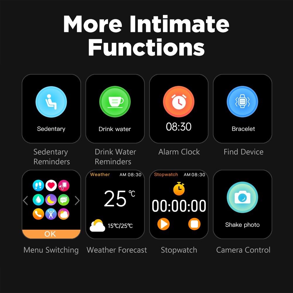 Display Glass: 2.5D Display Size: 1.69'' HD Color Touch Screen Display Resolution: 240 x 280 px