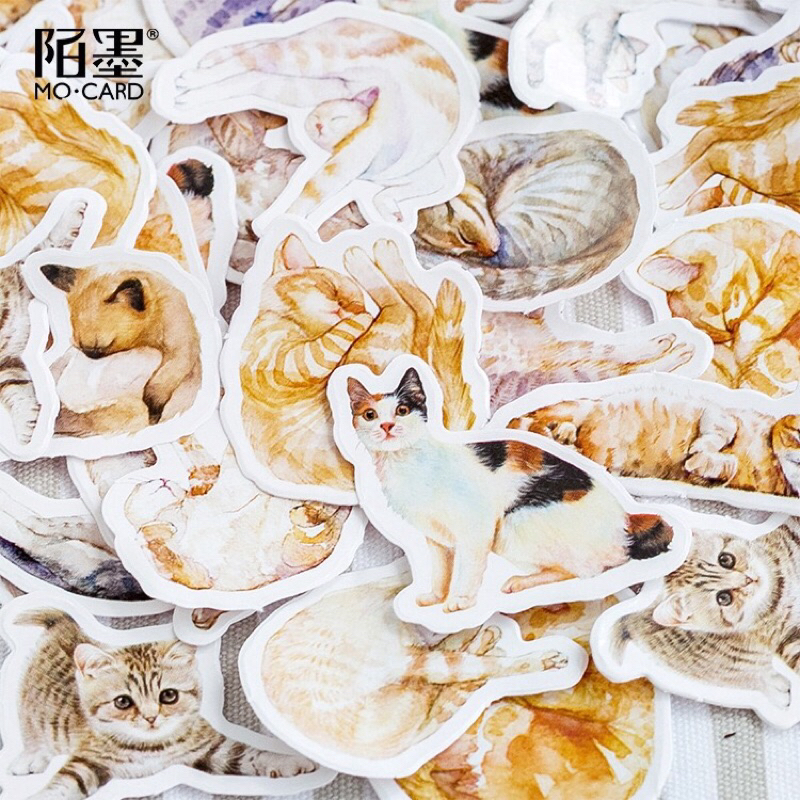 Detail (45 pcs) STIKER LUCU MOTIF KUCING UNTUK SCRAPBOOK/ALAT TULIS