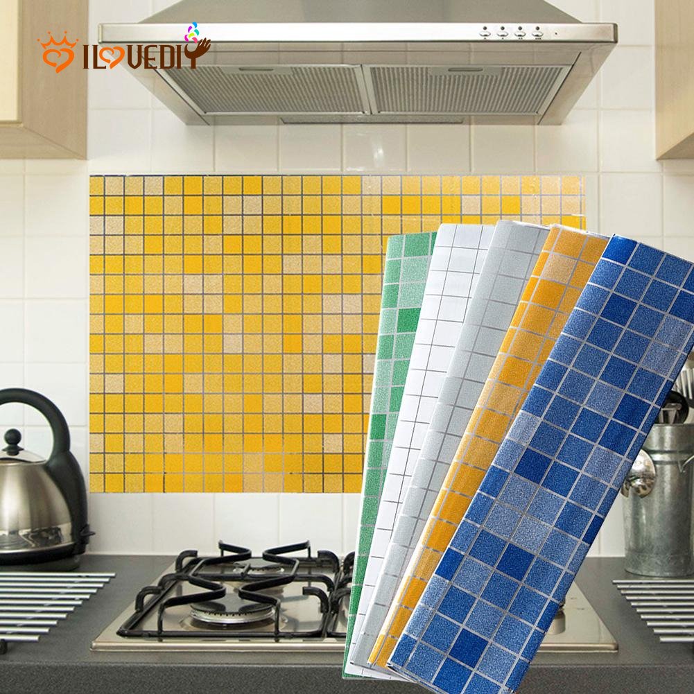 Detail 45x70cm Dapur Mosaik Kisi Minyak Bukti Wallpaper/Kamar Mandi Aluminium Foil Self-adhensive Stiker Dinding/Tahan Air DIY Foil Paper Art Wall Sticker