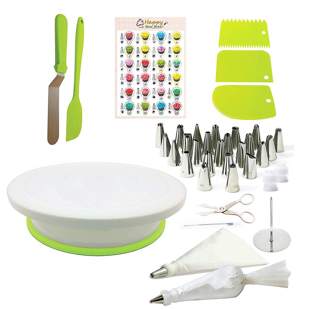 Detail 46pcs Kit Meja Putar Baking Scraper Alat Dekorasi Cupcake Fondant Nozzle