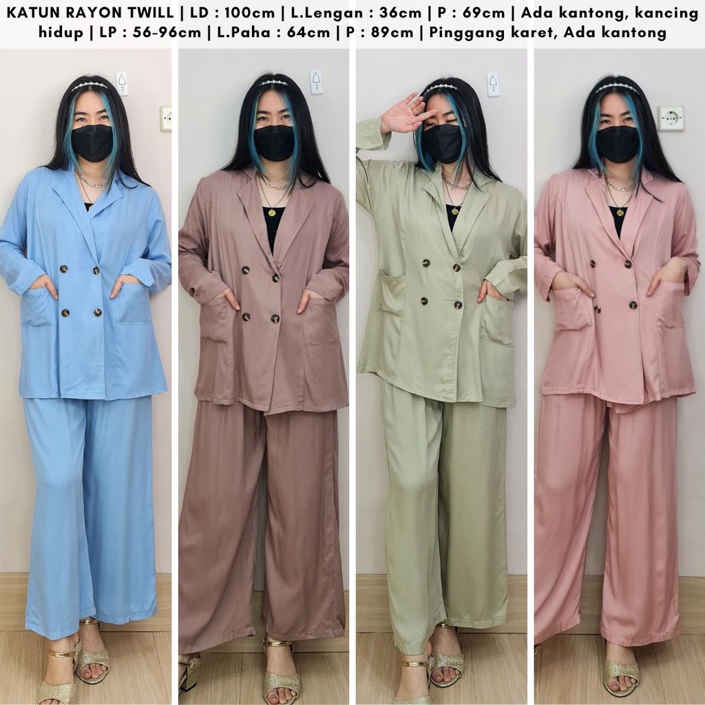 ๐ฅ NEW ๐ฅ #auvesion4789 JAQUEL RAYON TWILL BLAZER BUTTON LONG SLEEVES SET ๐ Rp 87.000/pcs ๐ Reseller Rp 83.000/pcs ๐ Seri 4pcs Rp 80.000/pcs ๐ Bahan : KATUN RAYON TWILL ATASAN = LD : 100cm | L.Lengan : 36cm | P : 69cm | Ada kantong, kancing hidup BAWAHAN = LP : 56-96cm | L.Paha : 64cm | P : 89cm | Pinggang karet, Ada kantong ๐ Allsize fit L-XL ๐ Berat 459gr . โ๏ธ READY STOCK โ๏ธ REAL PICTURE . NOTED MOHON DI PERHATIKAN !! TIDAK MENERIMA KOMPLAIN TANPA VIDEO UNBOXING !! - video harus jelas TOLONG TUNJUKAN PAKET SECARA KESELURUHAN TIDAK HANYA SETENGAH/SEBAGIAN & tidak terputus sampai ke bagian baju yang rusak / tidak sesuai - tidak menerima video : 1. setelah paket di buka baru di rekam 2. paket di bungkus ulang baru di rekam BATAS KOMPLAIN 1X24 JAM setelah paket di terima
