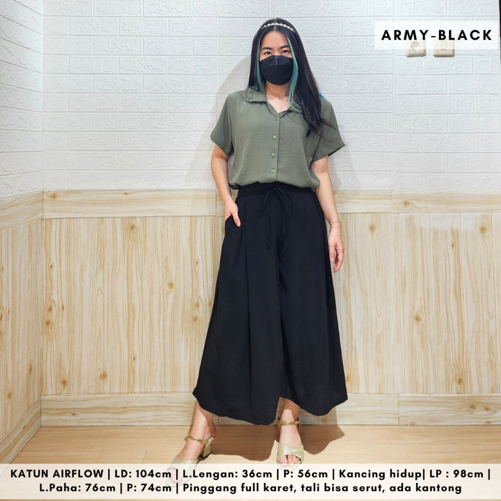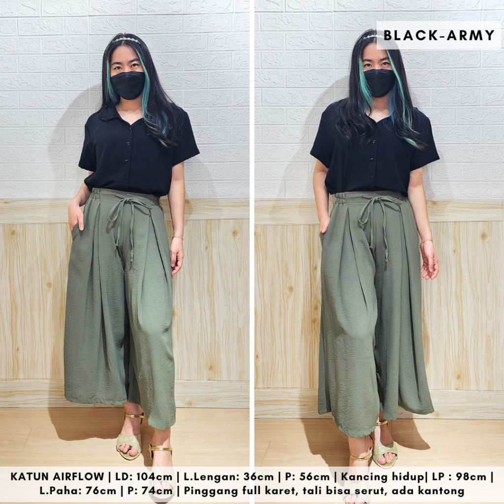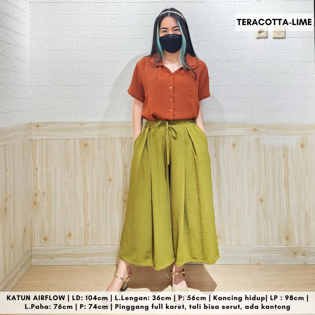 Detail 4816 frizay two tones button collar katun airflow cullotes one set celana wanita
