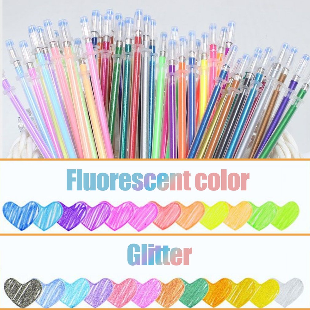 Detail 48pcs / lot Isi Ulang Pena Gel Glitter Multi Warna Fluorescent Untuk Perlengkapan Sekolah
