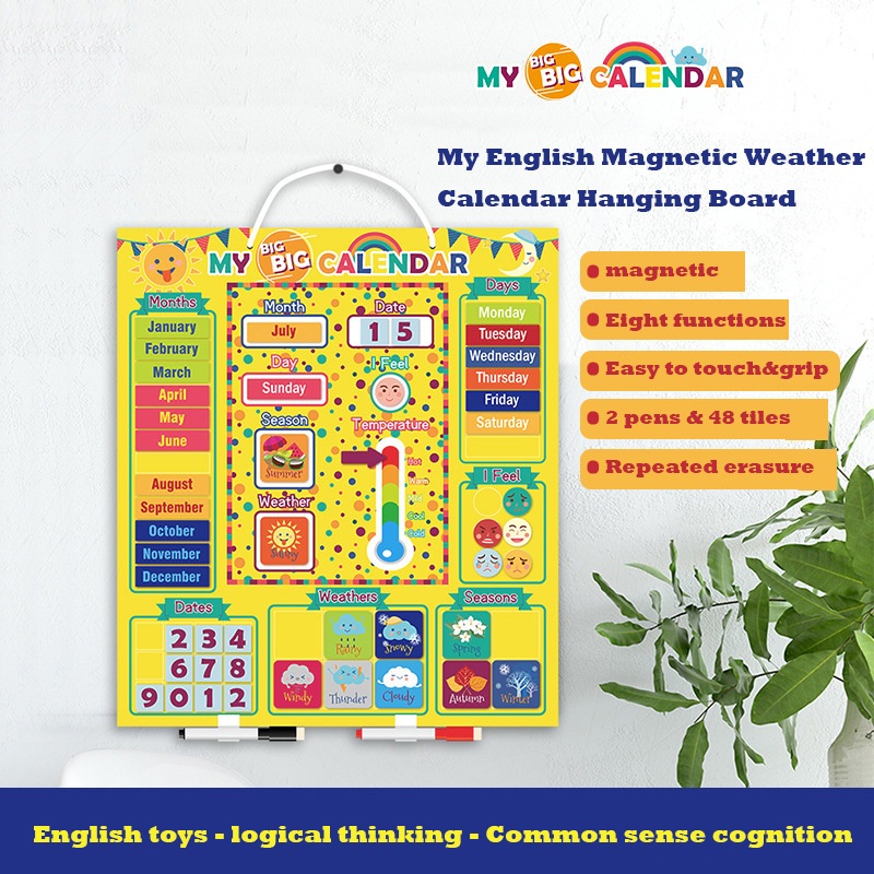 Detail 48pcs My Big Calendar Kalender Anak Magnet Montessori Papan Tulis Multifungsi Magnetic Catatan Waktu Cuaca Empat Musim