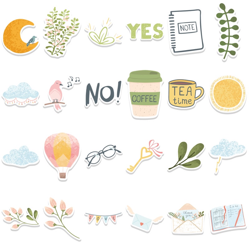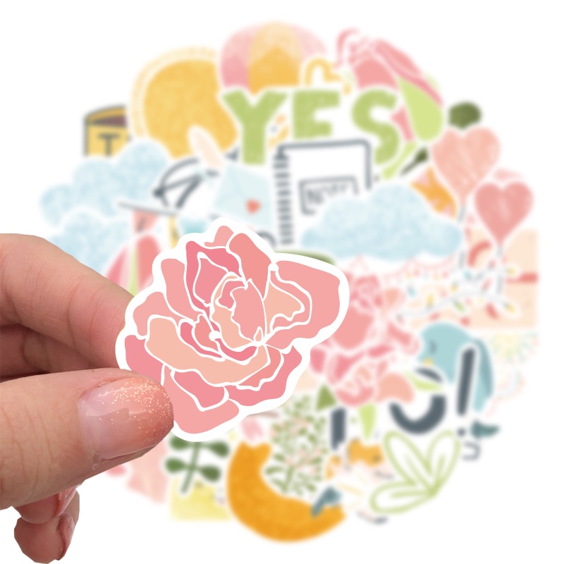 Buku & Alat Tulis > Buku Tulis & Kertas > Label & Stiker > 49pcs Kartun Sunshine Bunga Burung Tanaman Diy Stiker Untuk Alat Tulis Meja Scrapbook Kertas Kerajinan