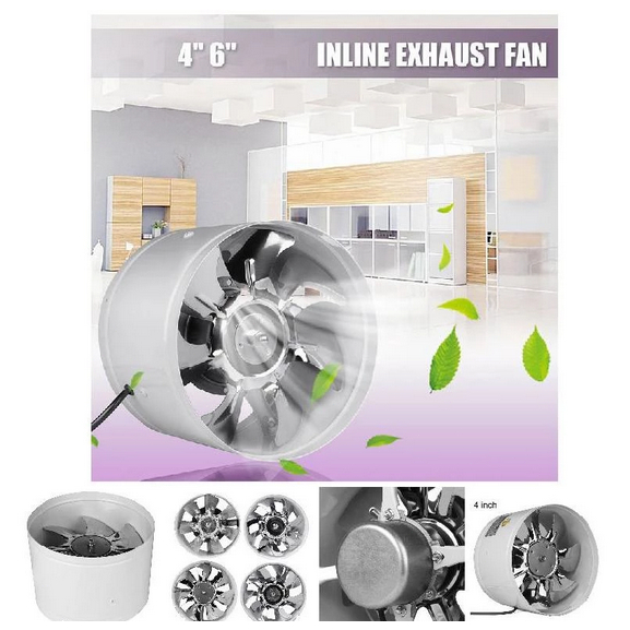 Perlengkapan Rumah > Perkakas > Blower > 4Inch Inline Duct Exhaust Fan Booster Exhaust Blower Air Cooling Vent Metal Blades Blower Booster Metal Blade Metal Inline Duct Fan Booster Exhaust Blower Air Cooling Vent 220V