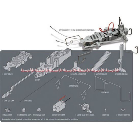> Insectoid ini mudah di bangun dan Temukan mekanisme di belakang gerakan robot. > Robot dapat merangkak, menggeliat dan berjalan. > Dengan sekrup, konektor, Caps, dan motor,Set ini dilengkapi dengan obeng cross-head, dijual terpisah. > Power robot dengan 1 baterai AAA, juga dijual terpisah. > Set ini direkomendasikan untuk usia 8 tahun ke atas.