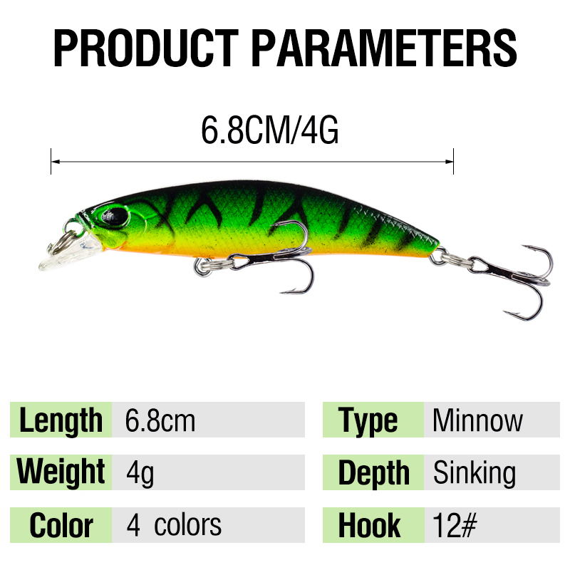 Olahraga & Outdoor > Alat Pancing > Umpan Pancing > 4pcs/kotak 6.8cm/4g Ikan Kecil Topwater Swimbait 3D Mata Pengecoran Umpan Pancing Keras Air Tawar Air Asin Mengambang Ikan Umpan Dengan 2kait Treble