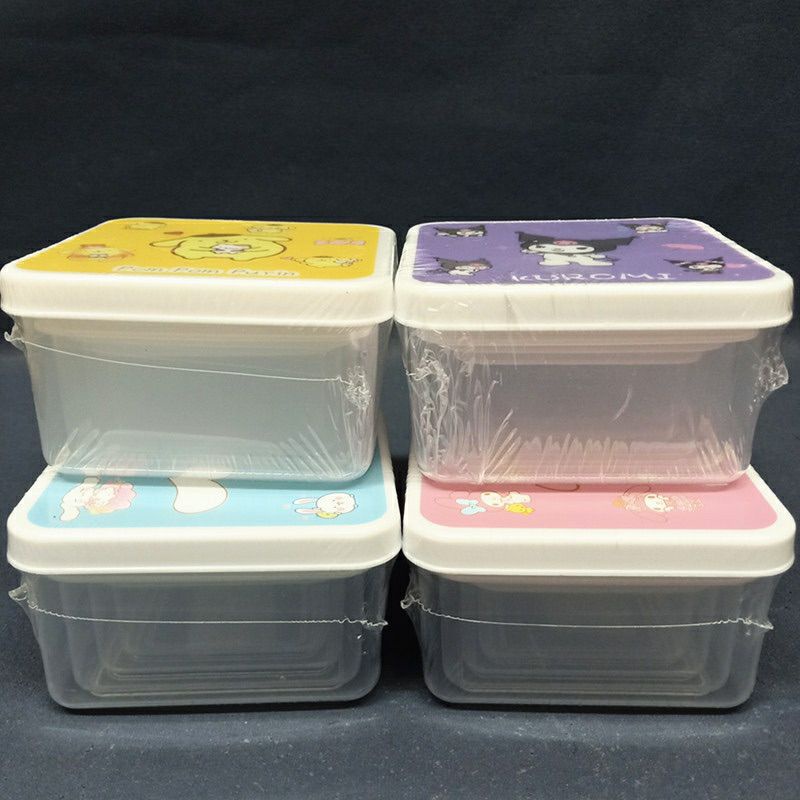 Perlengkapan Rumah > Peralatan Dapur > Tempat Penyimpanan Makanan > 4pcs Kotak Makan Cinnamoroll Tempat Makan 4in1 Kuromi Lunch Box Set Melody Tempat Penyimpanan Makanan Pompurin Meal Bento Box