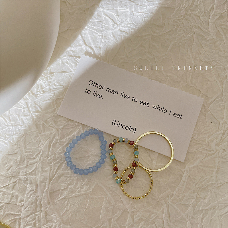 Detail 4pcs / Set Cincin Manik-Manik Warna-Warni Gaya Korea Untuk Wanita