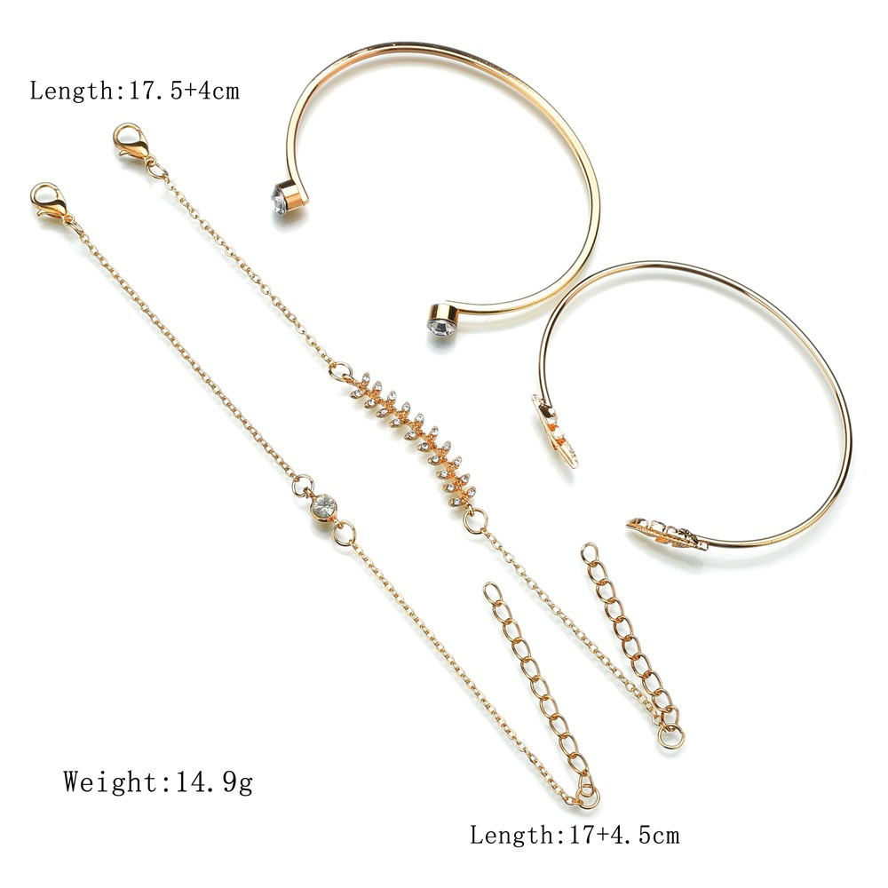 Detail 4pcs/set Gelang Rantai Emas Bentuk Geometris Daun Aksen Kristal Untuk Wanita