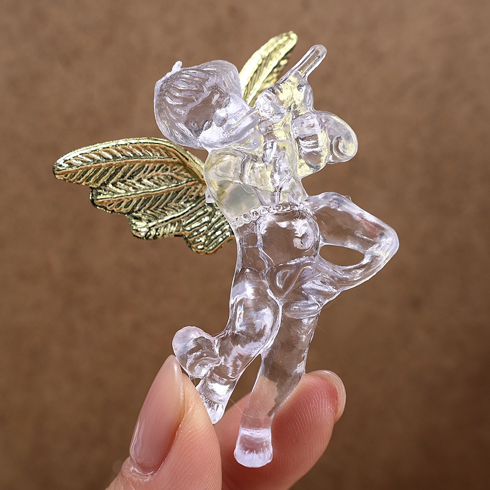Detail 4pcs / Set Liontin Malaikat Kecil Transparan Dengan Sayap Emas Untuk Dekorasi Pohon Natal