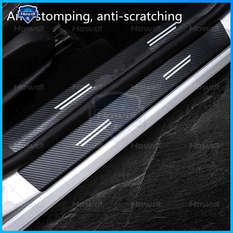 Detail 4pcs / Set Stiker Pelindung Step Pintu Mobil Bahan Carbon Fiber + Kulit Anti Gores