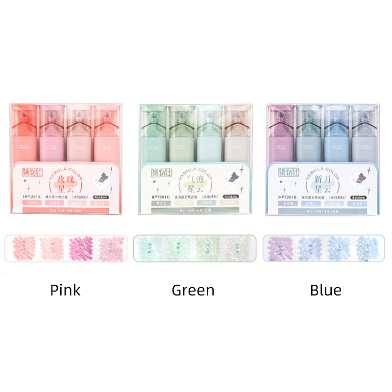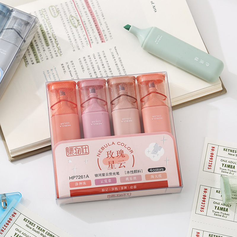 Detail 4pcs Stabilo Warna Pastel Kotak Dengan Serat Siswa Flash Halus Soft Chisel Nib Marker Pen