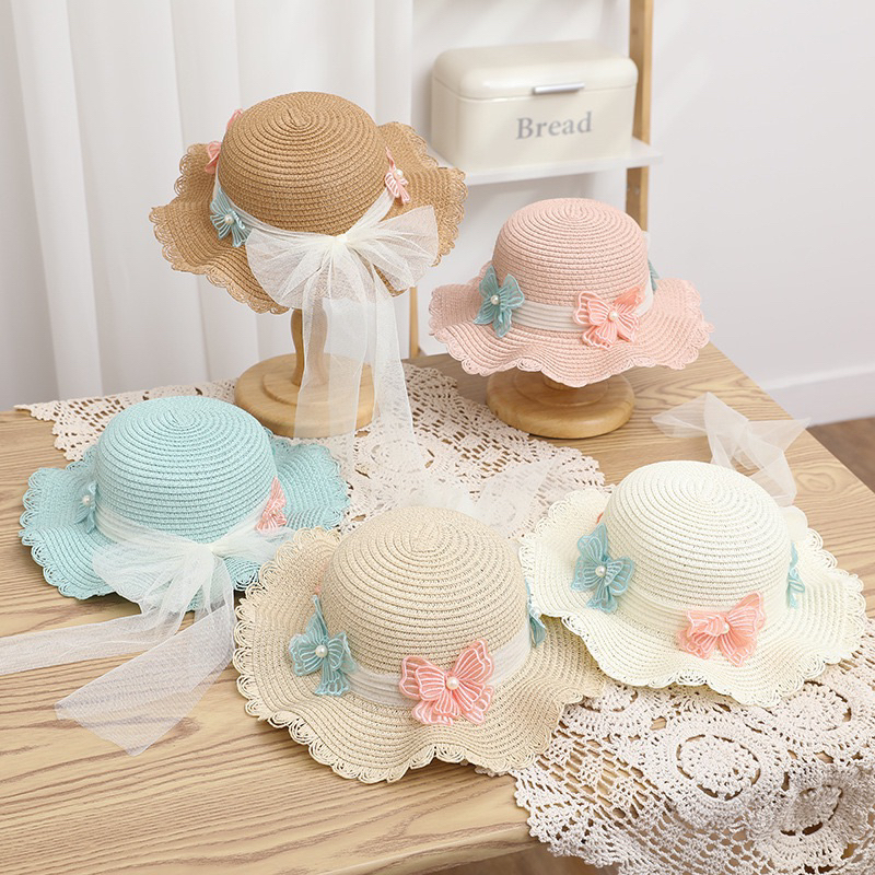 Detail 4tahun keatas Topi Pantai Import Anak Perempuan Dan Tas Jerami Butterfly