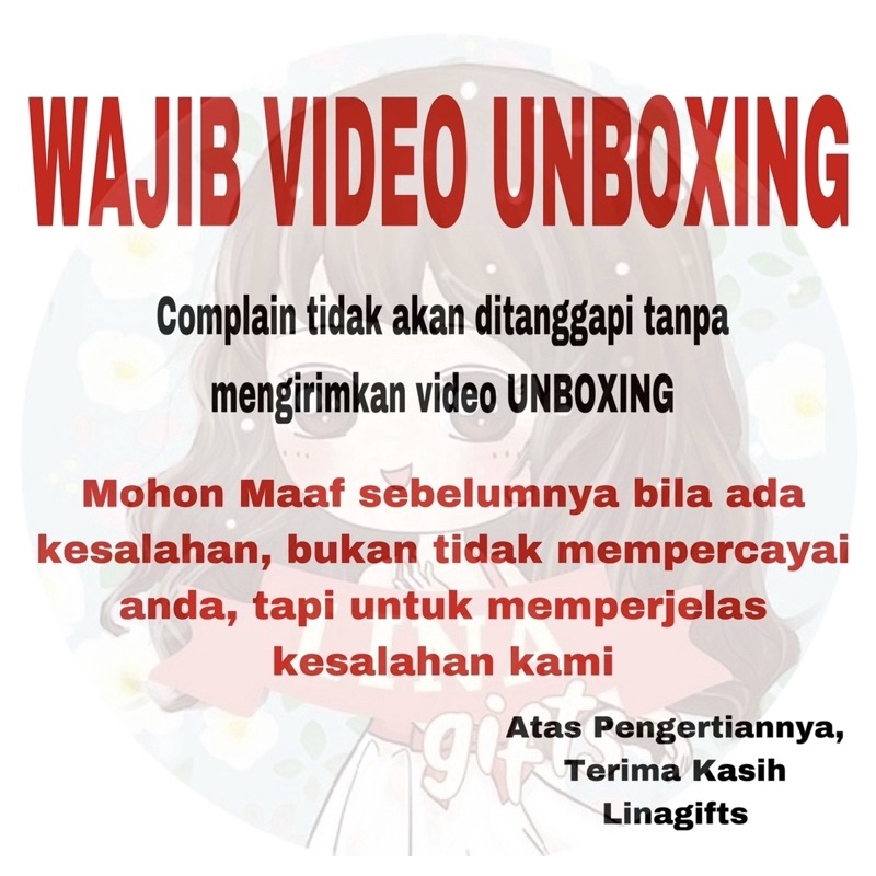 no complain bila rusak dlm pengiriman kerusakan dlm pengiriman diluar tanggung jawab kami COMPLAIN TIDAK AKAN DITANGGAPI TANPA MENGIRIMKAN VIDEO UNBOXING