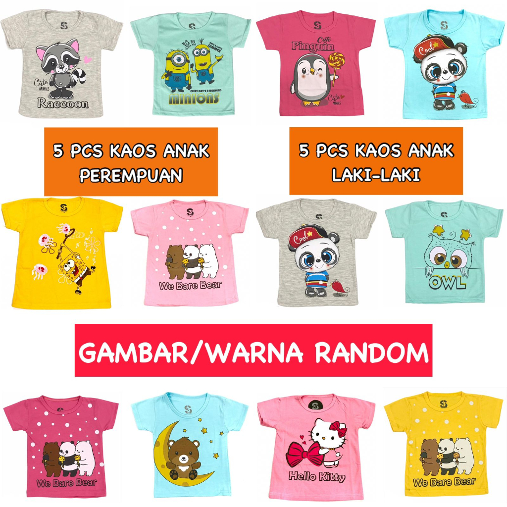 Detail 5 PCS BAJU ATASAN KAOS COMBED OBLONG ANAK LAKI-LAKI/PEREMPUAN/COWOK/CEWEK/UNISEX
