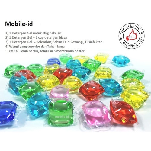 Keuntungan mencuci menggunakan Laundry Gel Ball : 1. Super bersih, 1x cuci hanya butuh 1 Gel Ball 2. Hemat air dan waktu untuk mendapatkan kebersihan yang sama dengan deterjen normal. 3. Tidak akan menodai dinding mesin cuci Anda atau menempel pada tangan Anda. 4. Tidak perlu menakar deterjen. 5. Cepat larut dalam air, hemat air dan listrik, ramah lingkunga