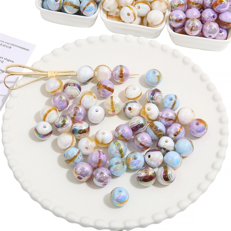 Aksesoris Fashion > Aksesoris Tambahan > Liontin > 5 Pcs Imitasi Starry River Susu Warna Cream Manik-Manik Bulat Resin Longgar Spacer Beads Untuk DIY Gelang Handmade Membuat Perhiasan Perlengkapan