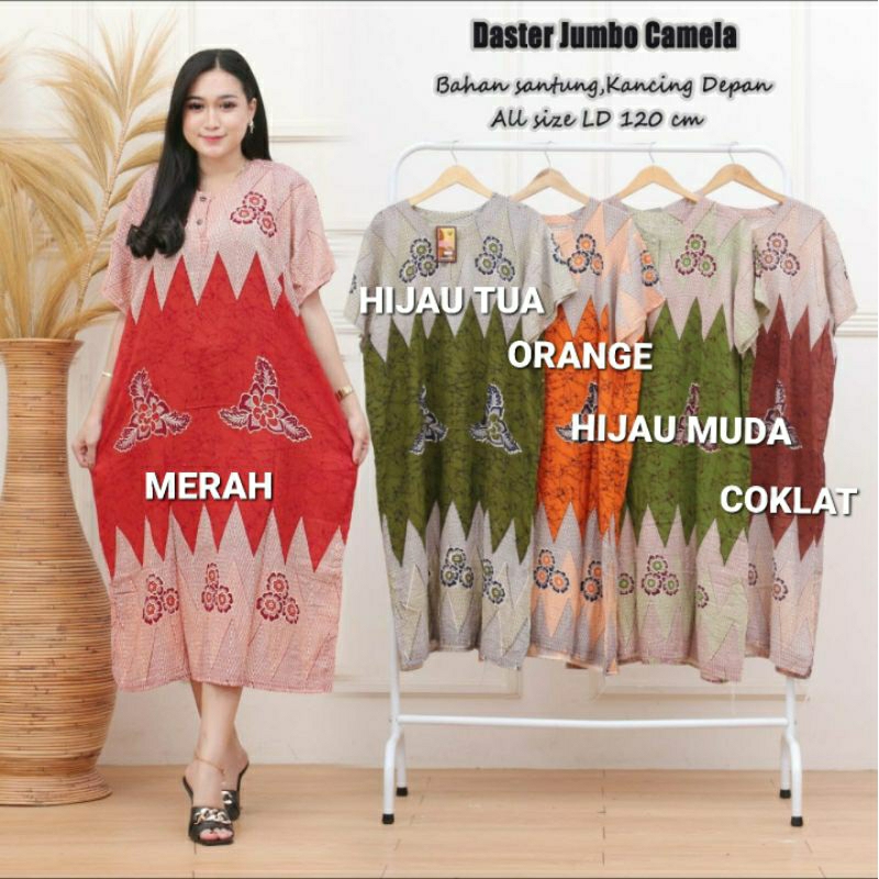 Adem dan nyaman saat di gunakan Lingkar Dada : 120 cm Panjang Baju : 120 cm Kancing depan : 2 biji Bahan : Santung Rayon Model : Daster Ukuran : Jumbo ( XXL ) Motif : Batik Terbaru