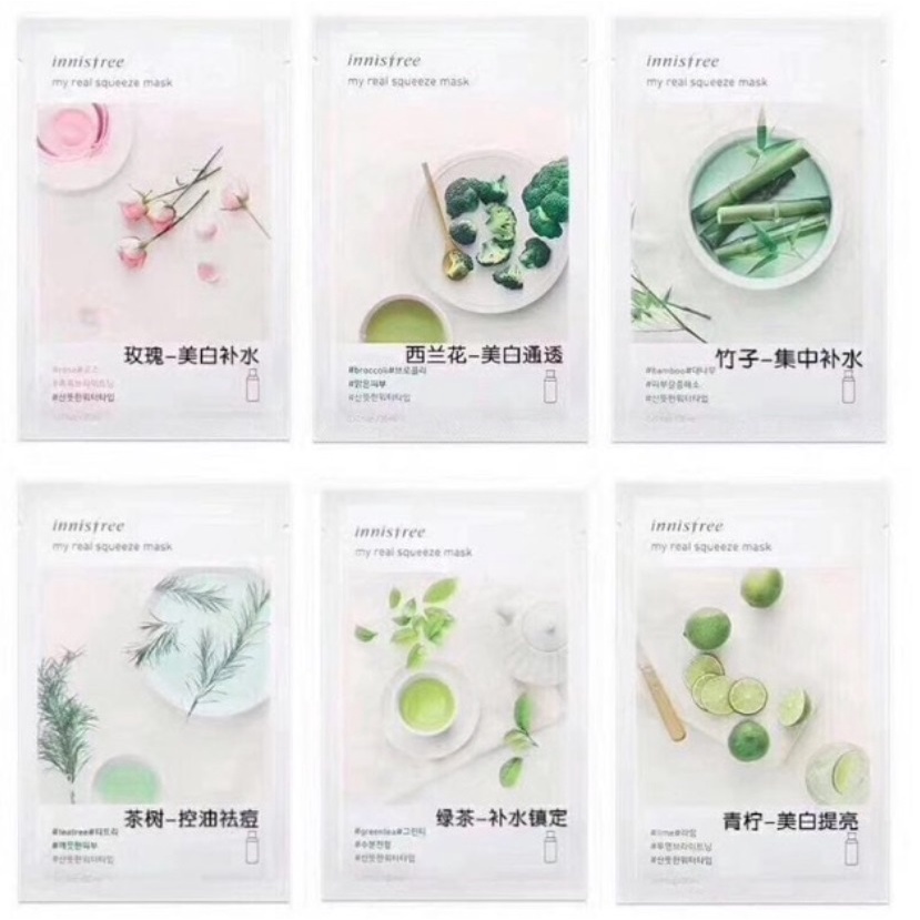 Detail 5 Pcs RANDOM Masker Innisfree My Real Squeeze Sheet Mask 23 ml / Masker Wajah Innisfree Glowing / Masker Pemutih Wajah Pencerah Wajah / Masker Wajah Organik Innisfree / Masker Korea Pelengkap Serum Wajah – Masker Muka Pria Wanita Skincare TERLARIS