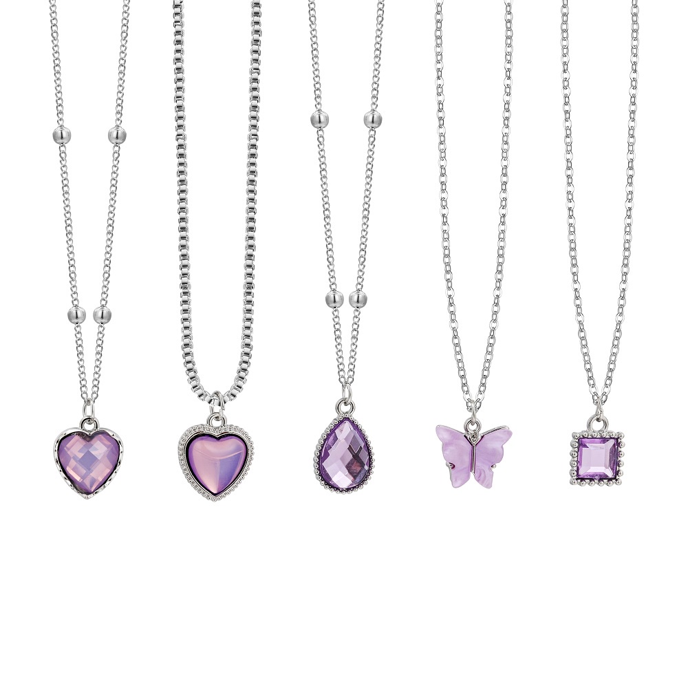 Detail 5 Pcs/Set Mewah Batu Permata Kupu-Kupu Kalung Set Geometris Jantung Liontin Rantai Choker Wanita Perhiasan Aksesoris