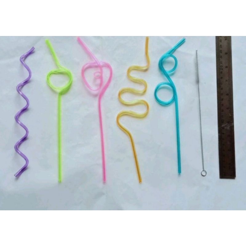 isi 5 sedotan ulir dan satu sikat sedotan ulir.di kirim random.beda warna dan beda bentuk